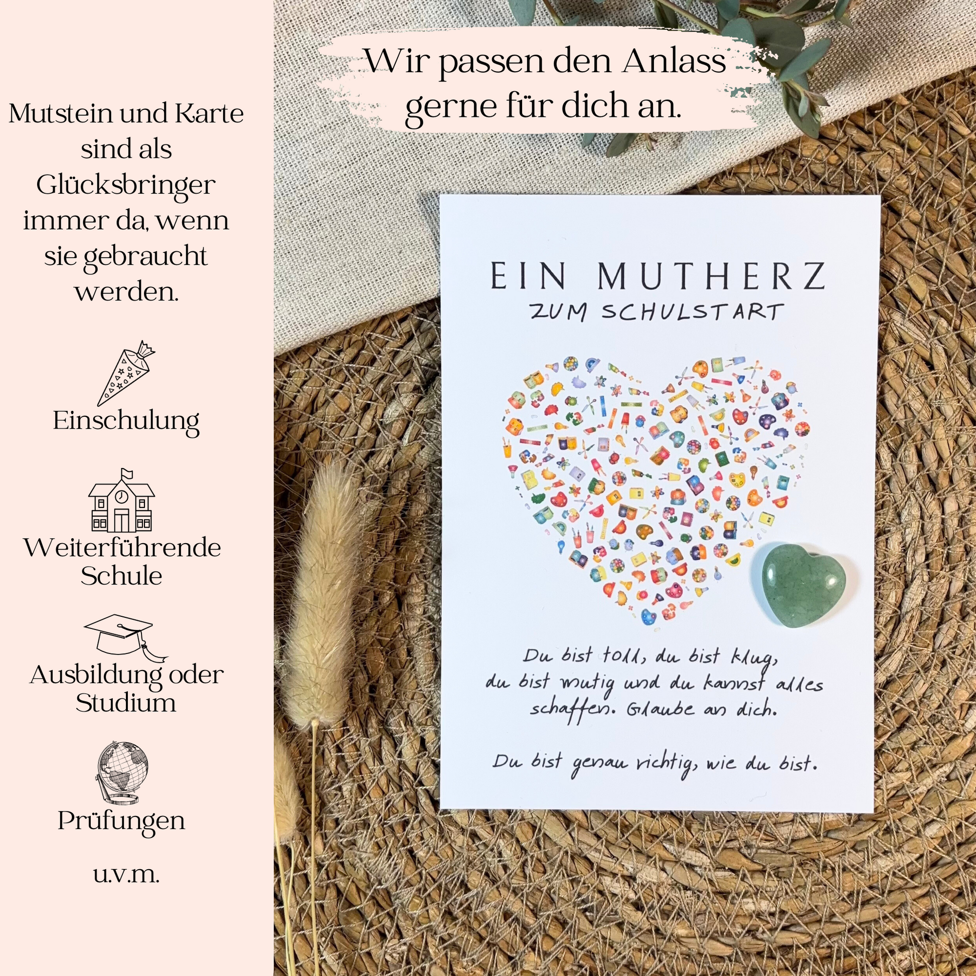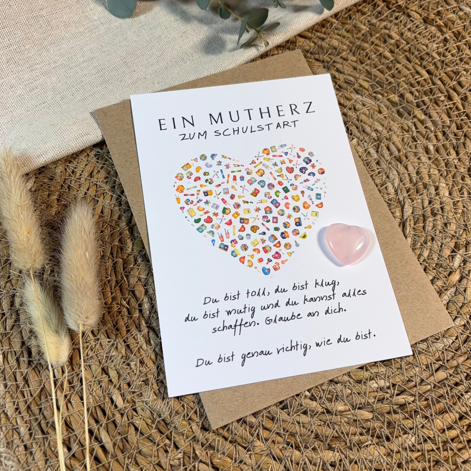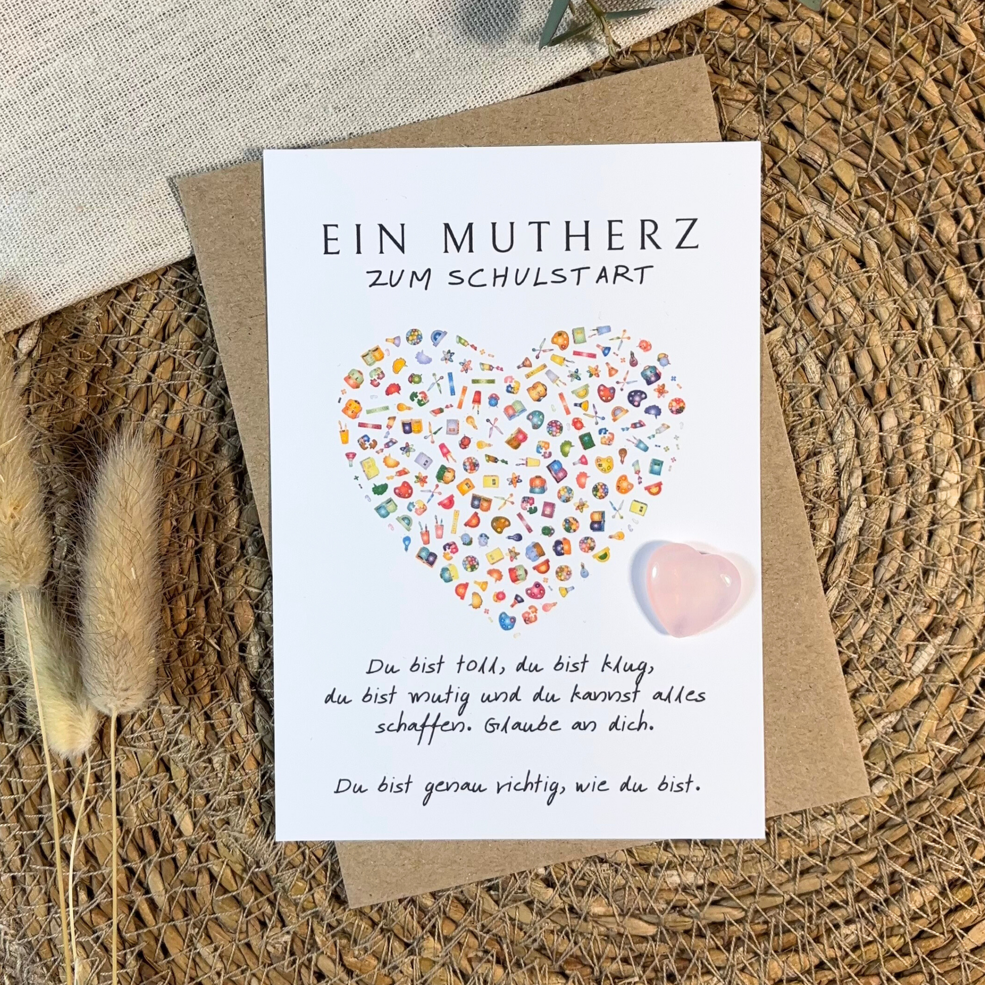 Neue oder ungewohnte Situationen erfordern Mut und den Glauben an sich selbst. Unsere Mutsteine in Herzform und unsere Mutmachkarte geben genau das. Sie bestärken darin, an sich selbst zu glauben.